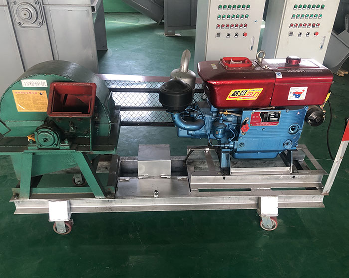 粉碎機(jī)配柴油機(jī)啟動(dòng) 根據(jù)客戶需要粉碎木材的粗細(xì)配粉碎機(jī)和柴油大小