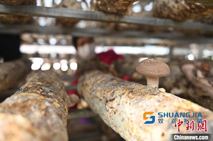 食用菌棚中,一排排種植架子整齊的排列著,上面放滿了種植的菌棒。種植農(nóng)戶陳蓮夫婦2023年回鄉(xiāng)開始承包種植食用菌。從開始的5個大棚到今年的11個大棚,她的收入逐步提高,每個棚中有1萬根菌棒,可以帶來3萬元左右的收入。