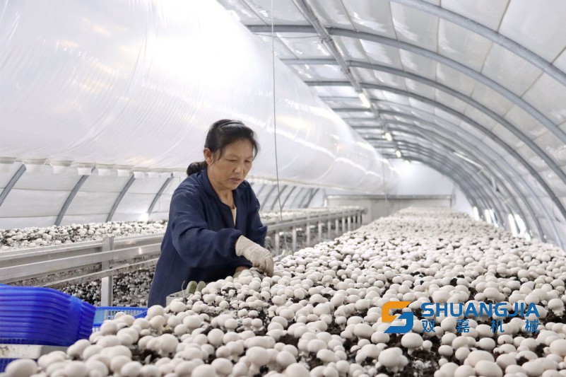 2022年7月,總投資1300余萬元的新基村蘑菇基地投入使用,16座愛爾蘭弧形種植菇棚采用三次發(fā)酵技術(shù),融合數(shù)字化技術(shù),實現(xiàn)工廠化種蘑菇,日均產(chǎn)量達3.3噸,是傳統(tǒng)大棚種植效率的8倍多。