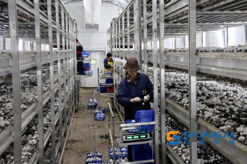 在降低人力成本的同時,蘑菇生長周期大大縮短,菇房年周轉(zhuǎn)次數(shù)增加到7次,每周轉(zhuǎn)期產(chǎn)量提升至每平方米60斤,全年都能無差別供應(yīng)生鮮。