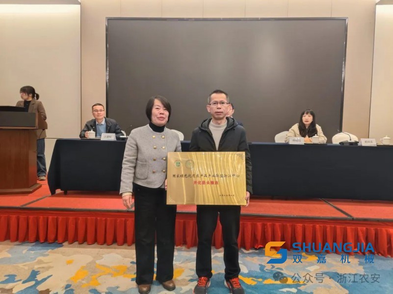 會期,浙江省農(nóng)業(yè)科學(xué)院農(nóng)業(yè)科技管理專家、國家綠色優(yōu)質(zhì)農(nóng)產(chǎn)品產(chǎn)業(yè)聯(lián)盟浙江中心主任褚田芬研究員為開化縣農(nóng)業(yè)農(nóng)村局頒發(fā)了“國家綠色優(yōu)質(zhì)農(nóng)產(chǎn)品產(chǎn)業(yè)聯(lián)盟浙江中心 開化縣頭雁連”牌匾。(來源:浙江農(nóng)安)